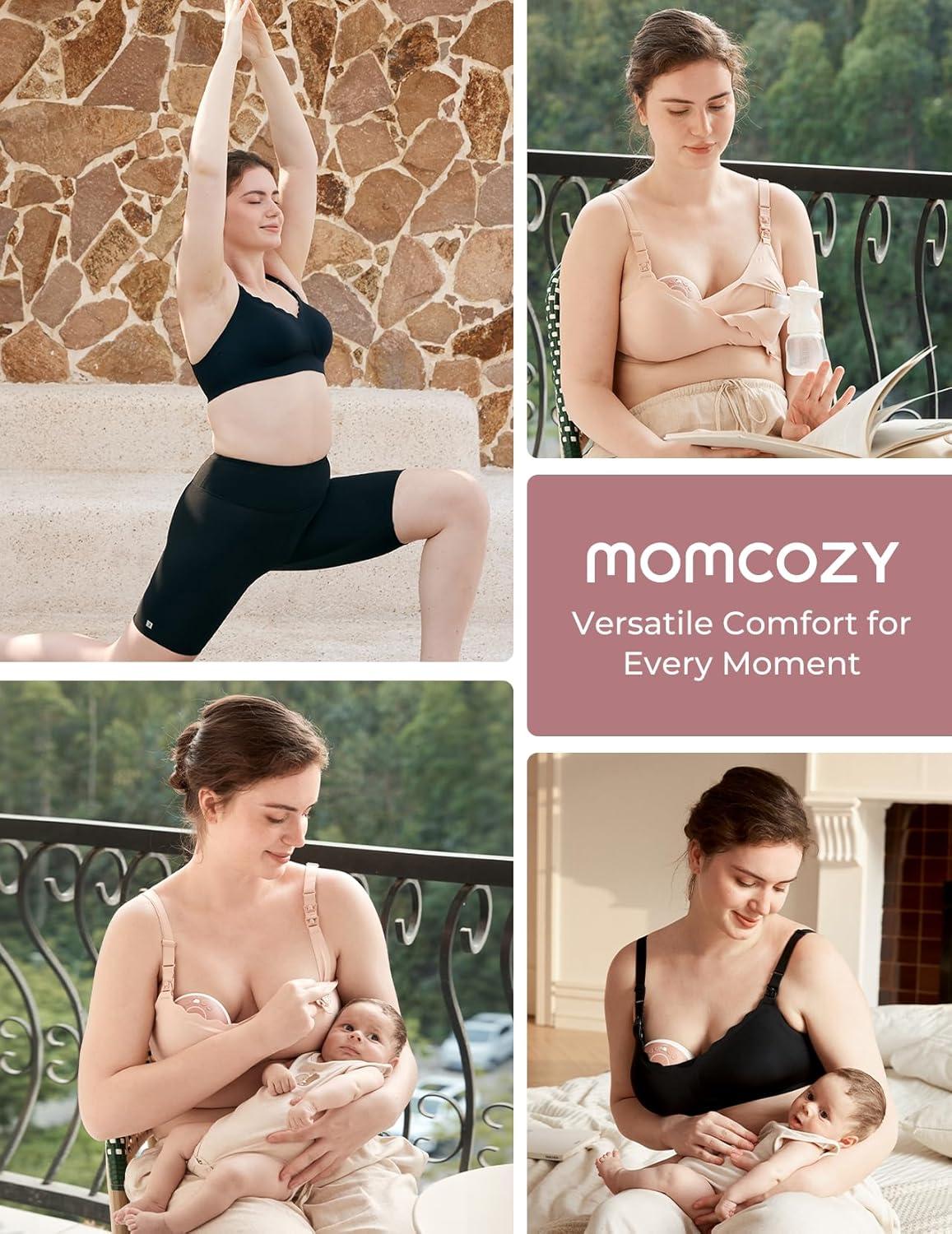 Momcozy 4-in-1 Hands-Free Pumping Bra with Cooling Fabric & Jelly-Strip Support, Nursing & Breast Pump Bra for All-Day Wear(Black)