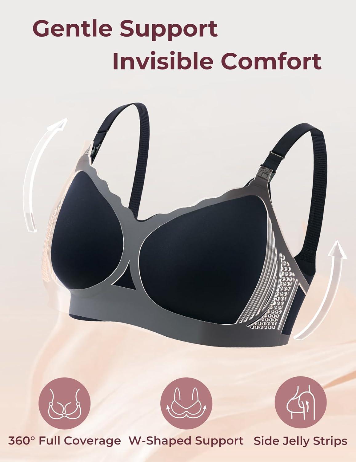 imageMomcozy Nursing Bras for Breastfeeding Seamless Comfort Maternity Bra Wireless Jelly Strip Support Pregnancy BraBlush
