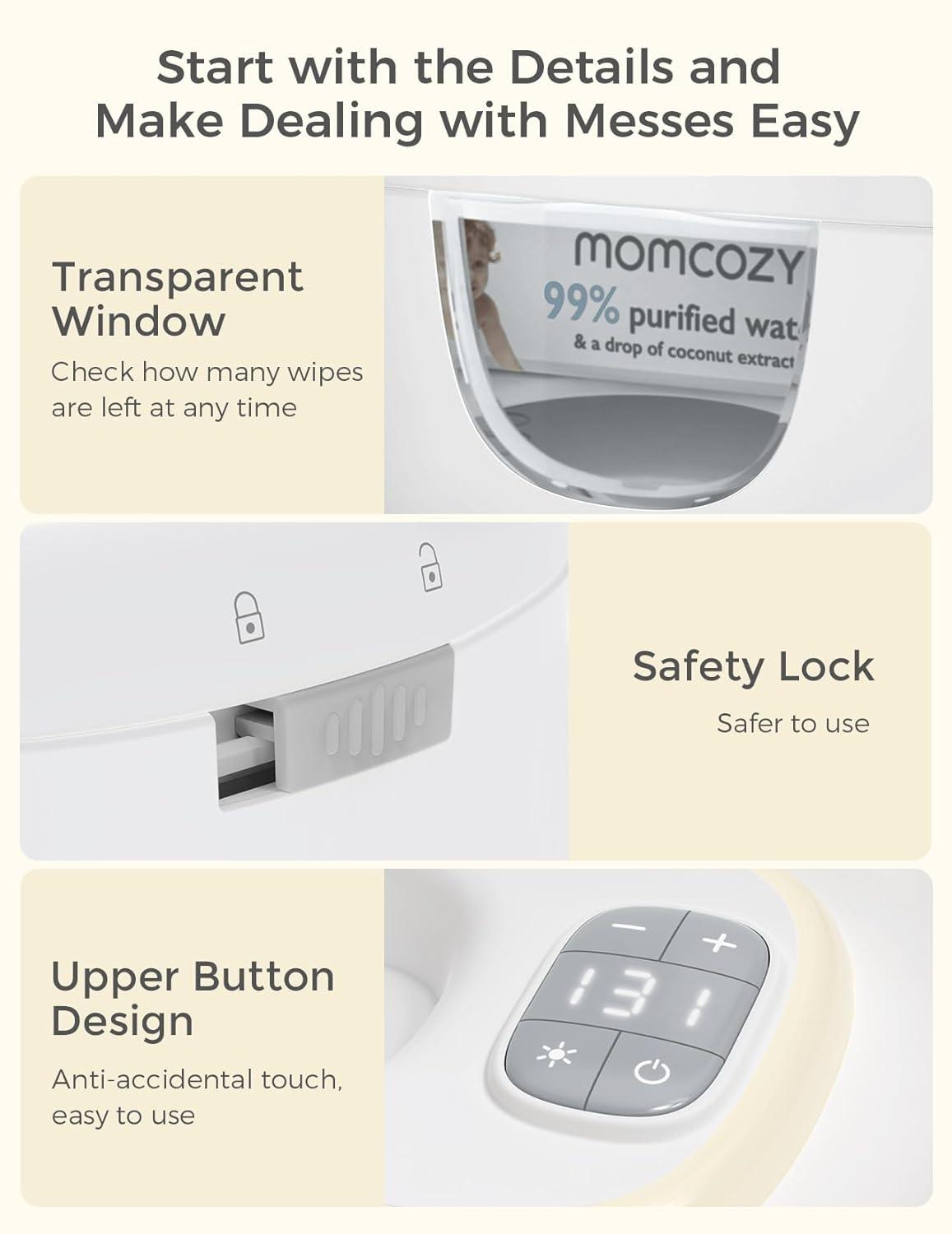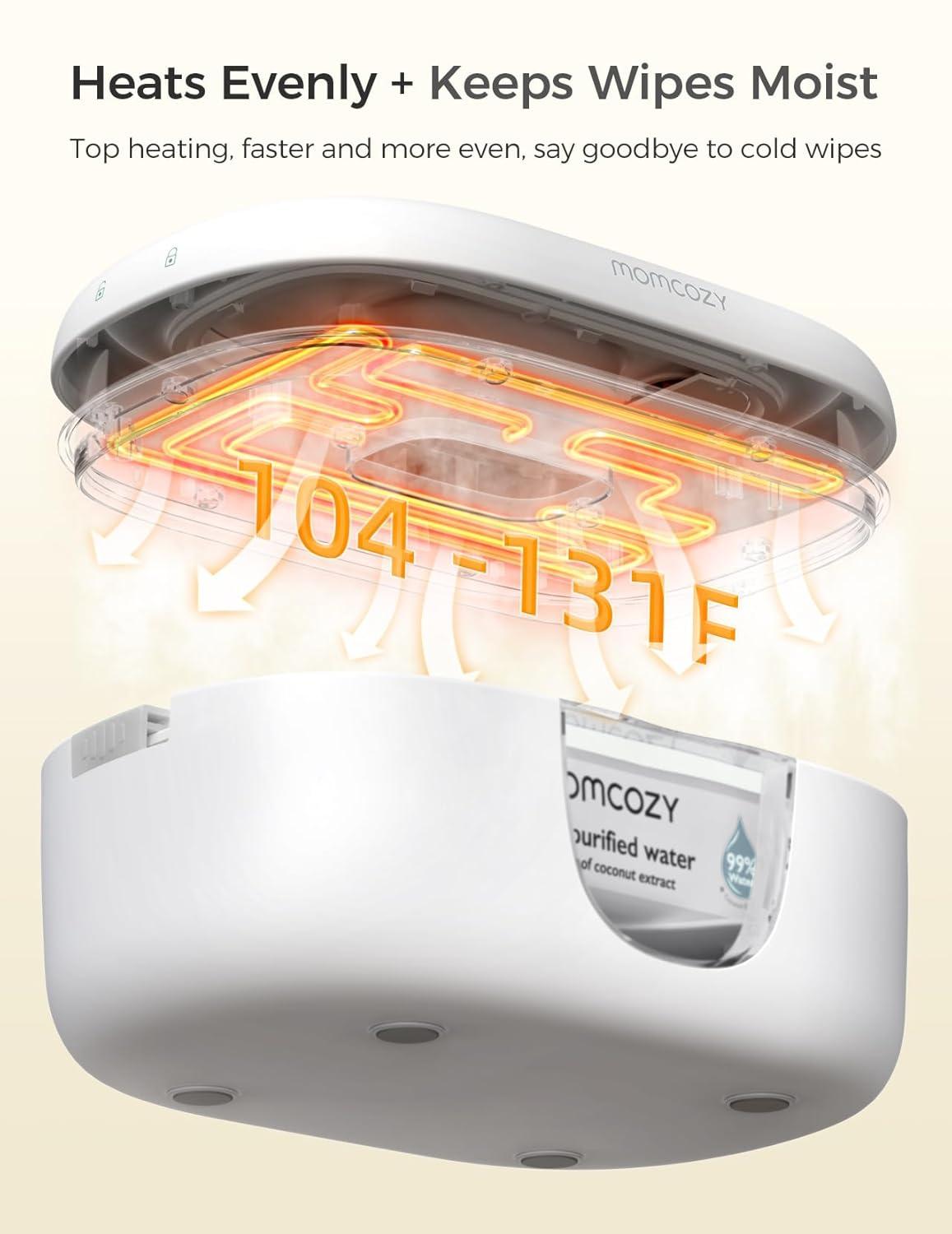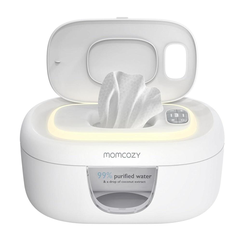 Momcozy Baby Wipe Warmer, Innovative Spring Design, Large Capacity Wipes Dispenser for 60-80pcs, Fast & Even Heating, 4 Modes of Temperature Heating Control, Diaper Wipe Warmer with Night Light, Grey(Grey)