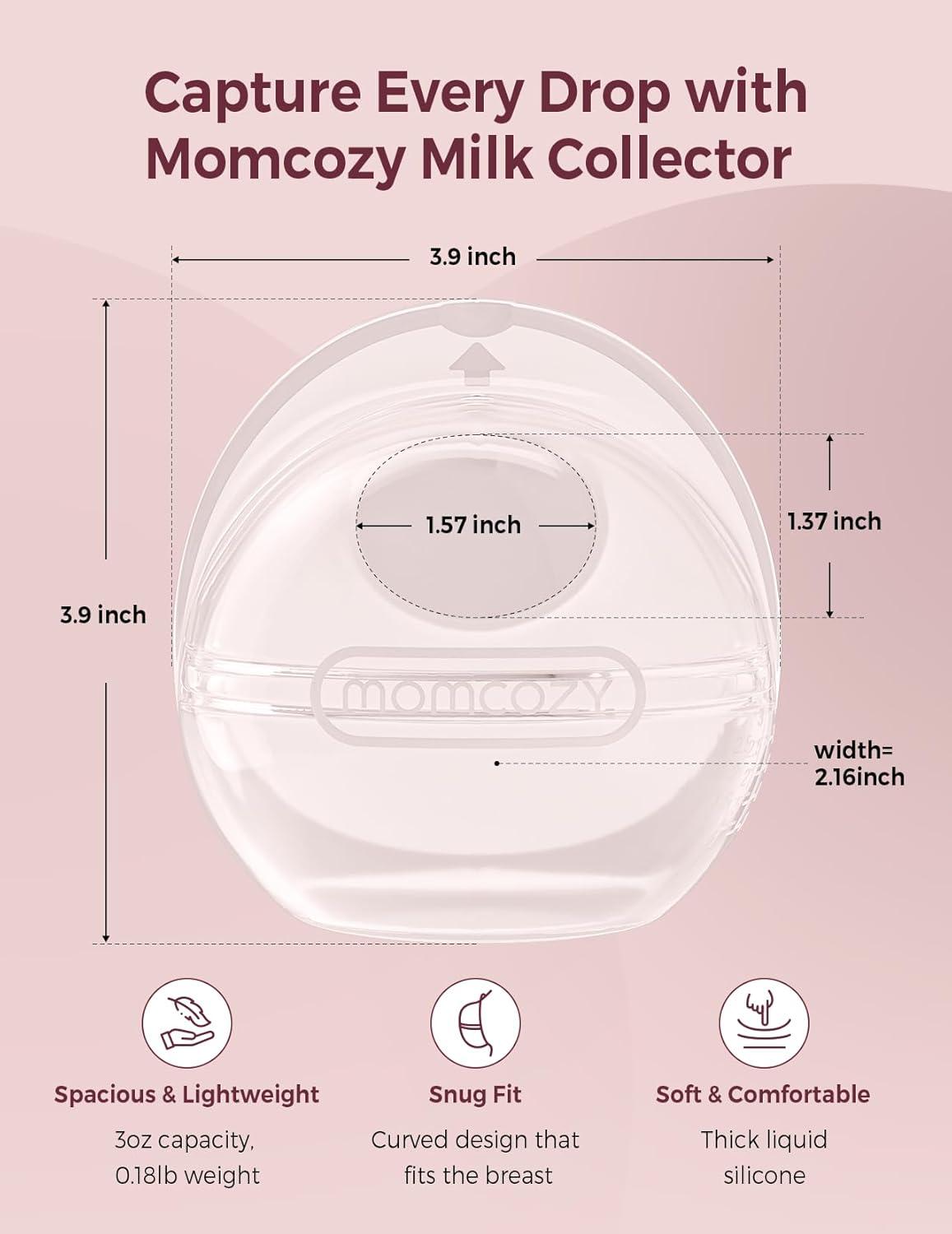 Save More Milk – Weighing only 0.18lb (82g) and holding up to 3oz (90ml), Momcozy milk collector reduces the need for frequent changes, which is ideal for moms with a higher milk supply. This milk collector works with nursing bras for a snug fit. It is designed for milk collection, not for pumping.