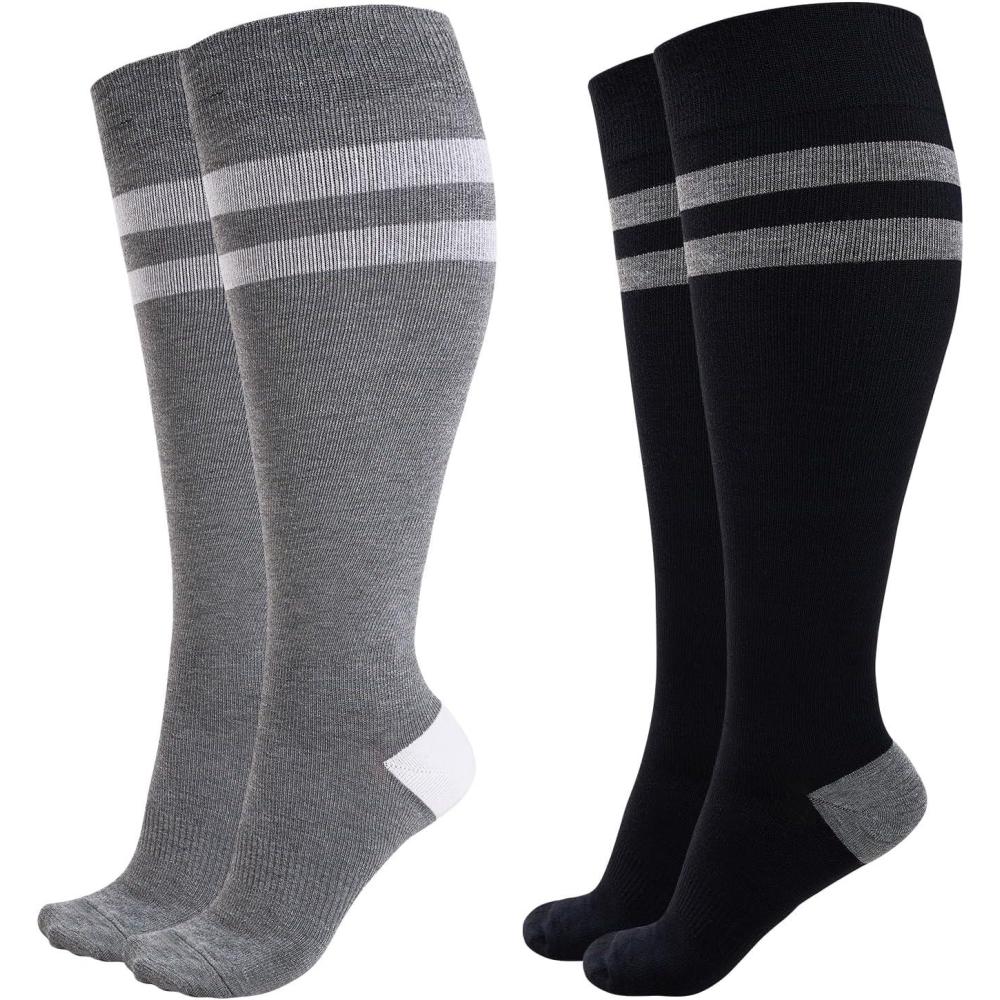 Momcozy Compression Socks for Women Wide Calf, 15-20mmHg Knee High Support Socks for Pregnancy, Nurses, Travel, Flying(Black/Dark Gray)
