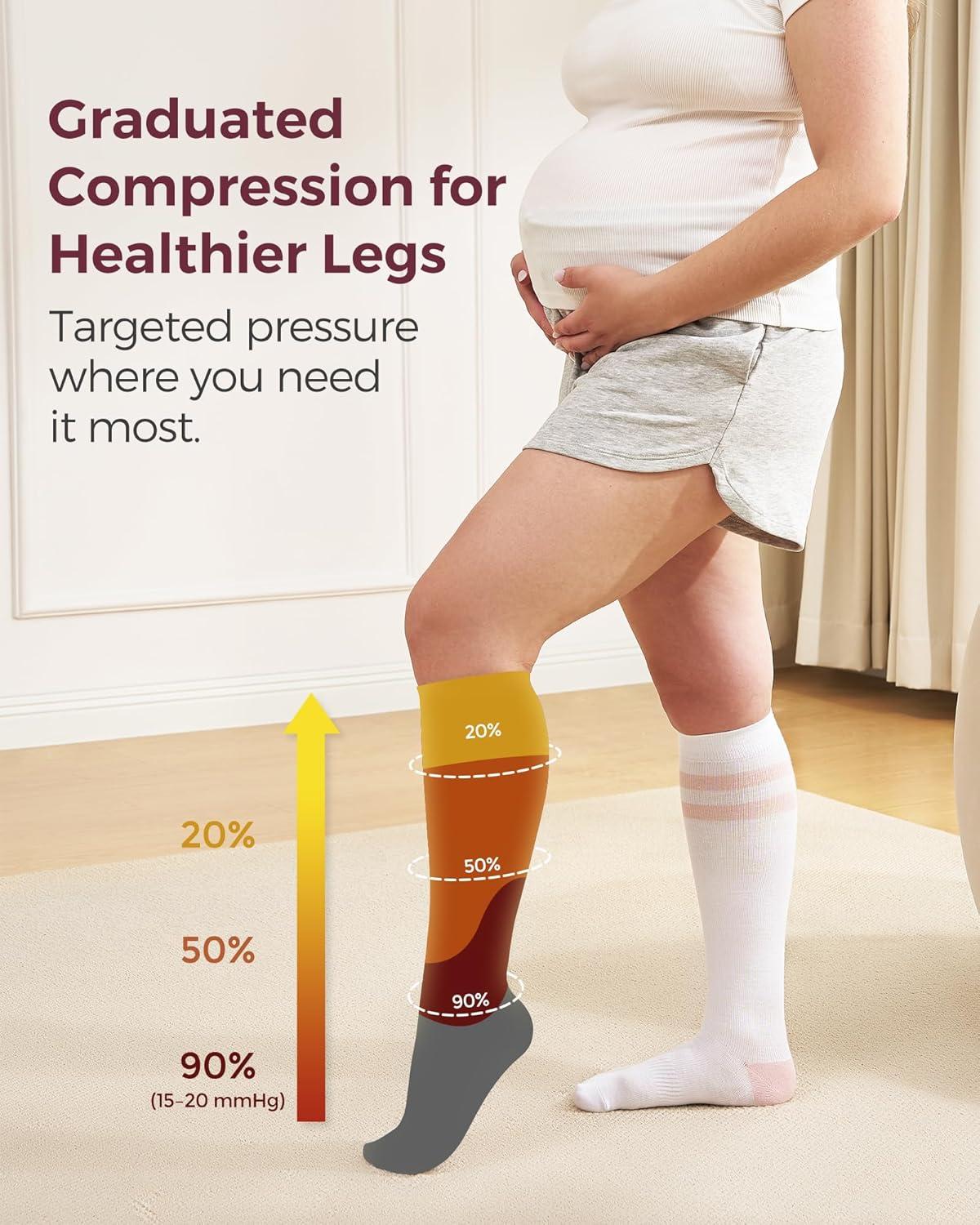 imageMomcozy Compression Socks for Women Wide Calf 1520mmHg Knee High Support Socks for Pregnancy Nurses Travel FlyingWhiteLight Gray