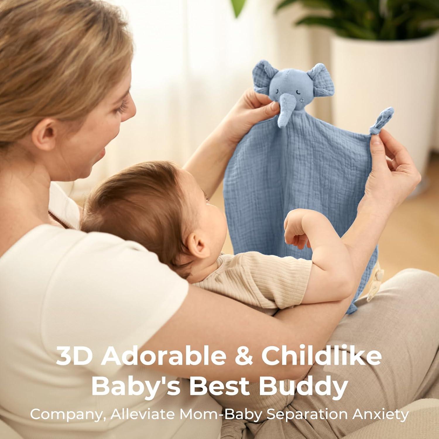 [ Premium Safety & Cloud Softness] Momcozy Loveys are Crafted from 100% cotton muslin with OEKO-TEX certifications, it is a cloud-like touch that babies instinctively adore. Like a mom's hug that comforts baby anywhere, easing anxiety in new places