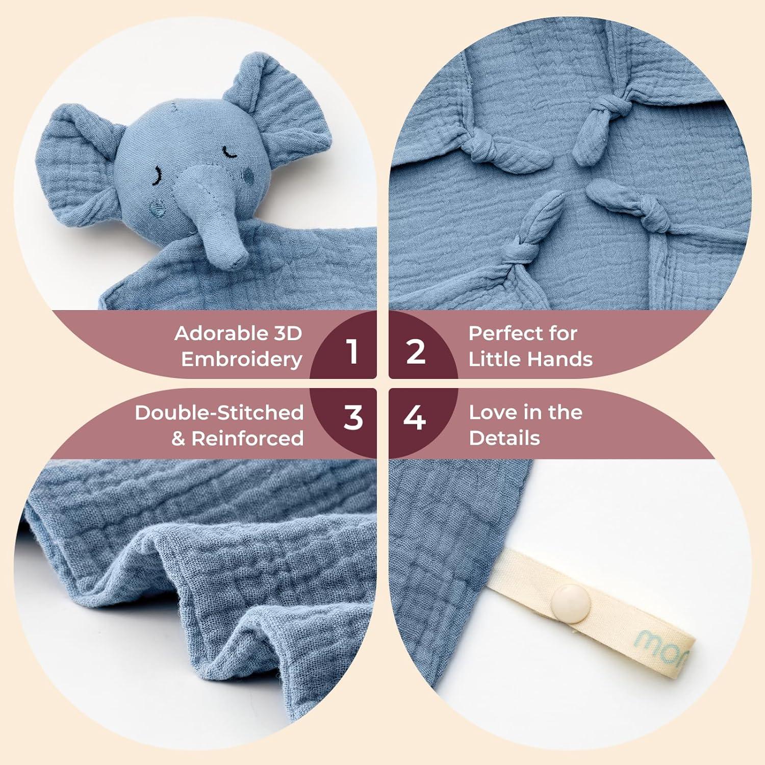 imageMomcozy Elephant Loveys for Babies with Cotton  Soft Security Blanket for Boy or Girl for SelfSoothing OnTheGoPortable ampamp AntiDrop Design  Newborn GiftMust HaveBlue 14 inchElephantblue