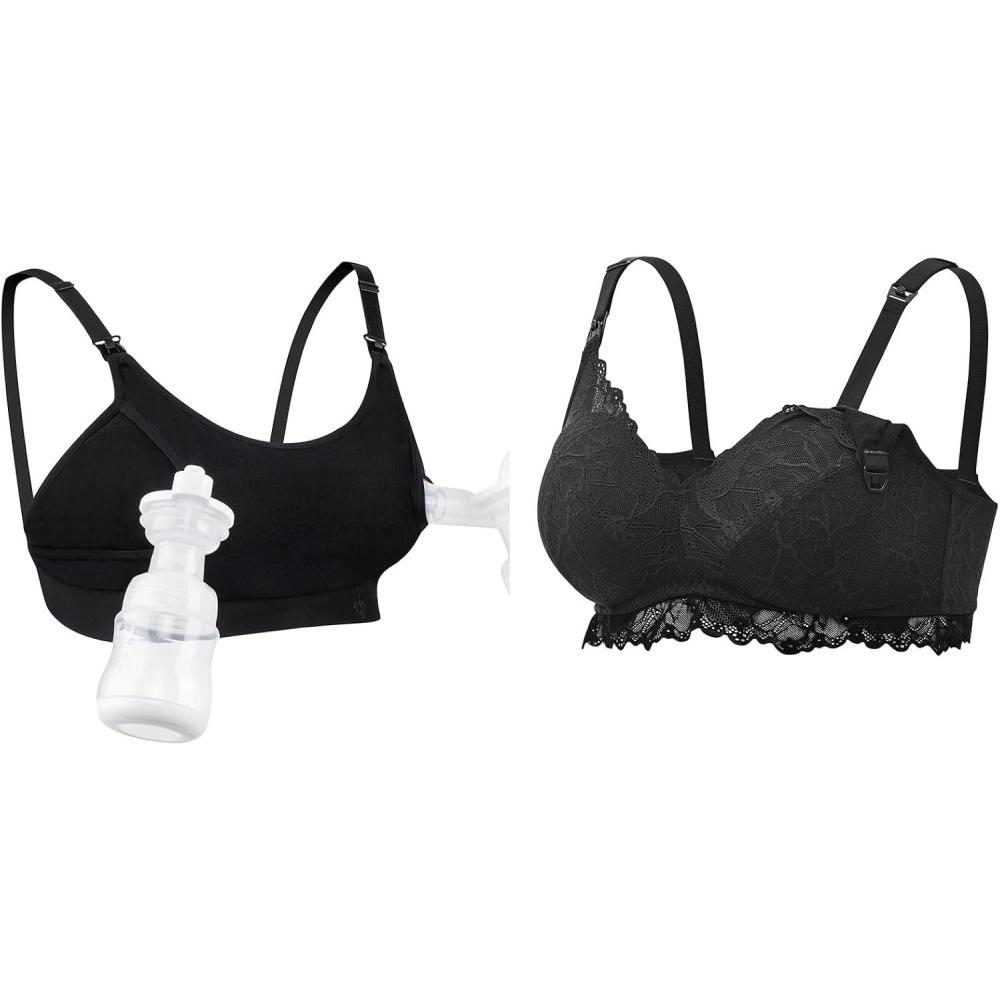 Get your hands on our exclusive Momcozy Hands Free Pumping Bra+Lace Padded V Neck Nursing Bra Medium 36C-36E collection, now at a discounted price.
