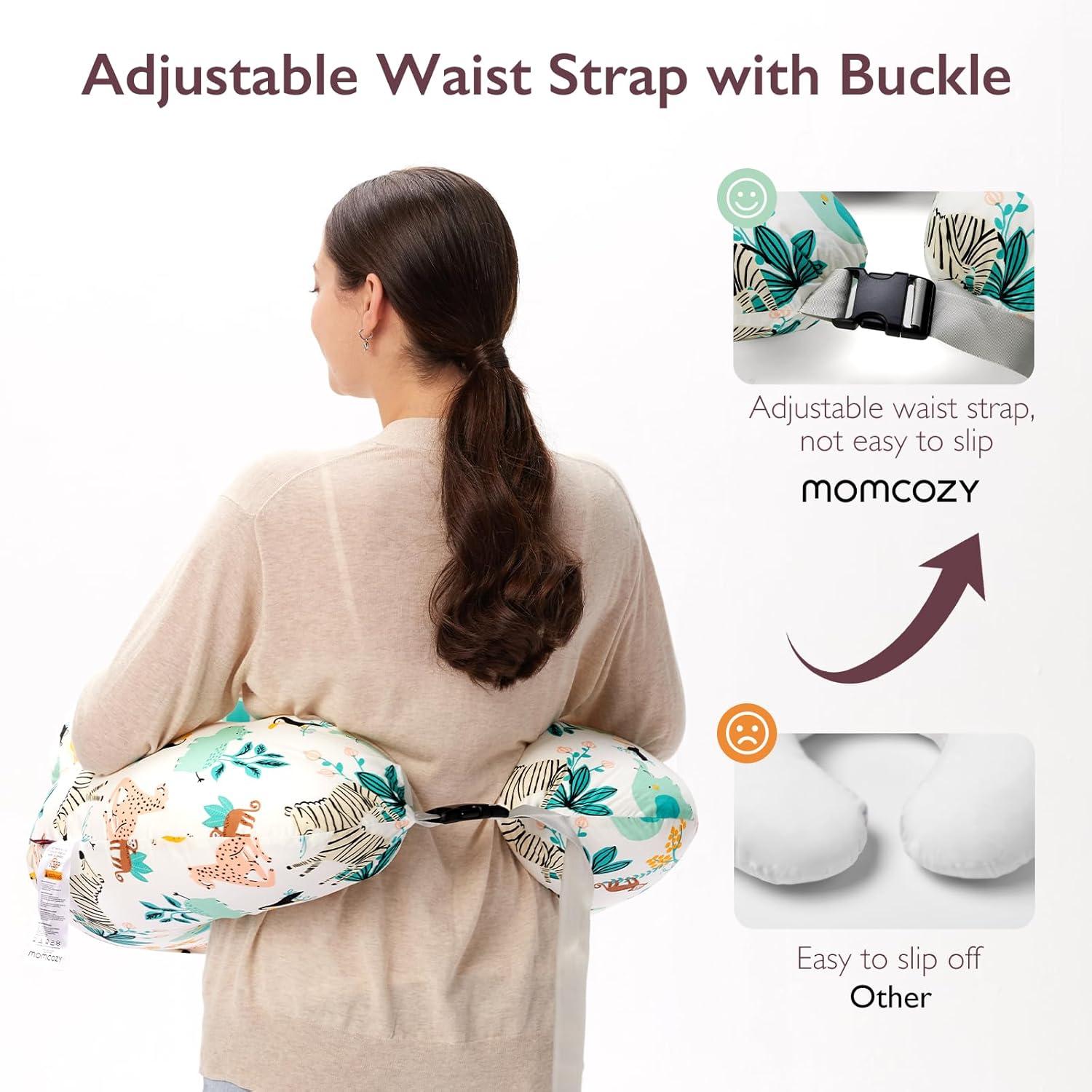 imageMomcozy Innovative Safety Fence Nursing Pillow  Firm ampamp Springy Memory Foam  Stable Ergonomic Support ampamp Comfort  Wider Breastfeeding Cushion Adjustable Removable Cover Baby Safety CertifiedColorful Animals