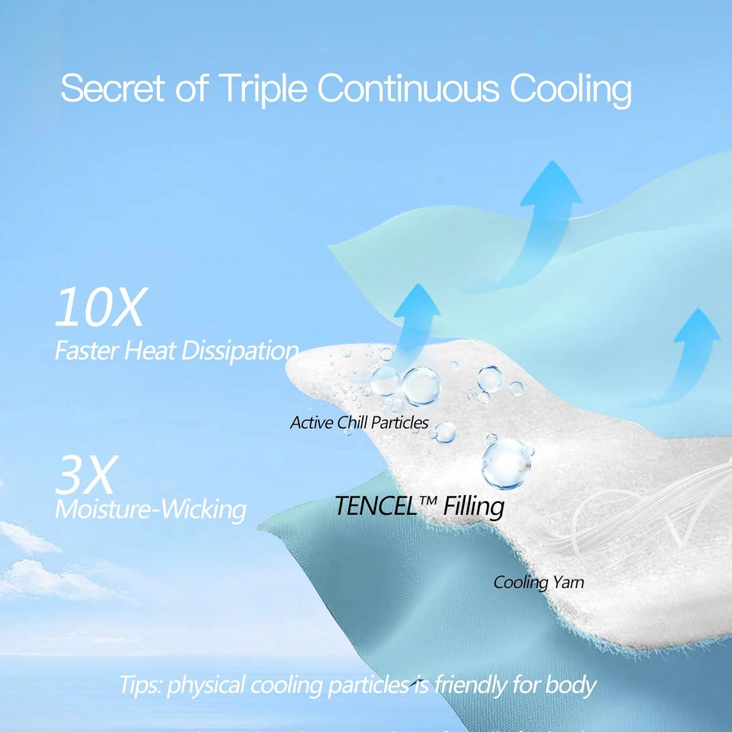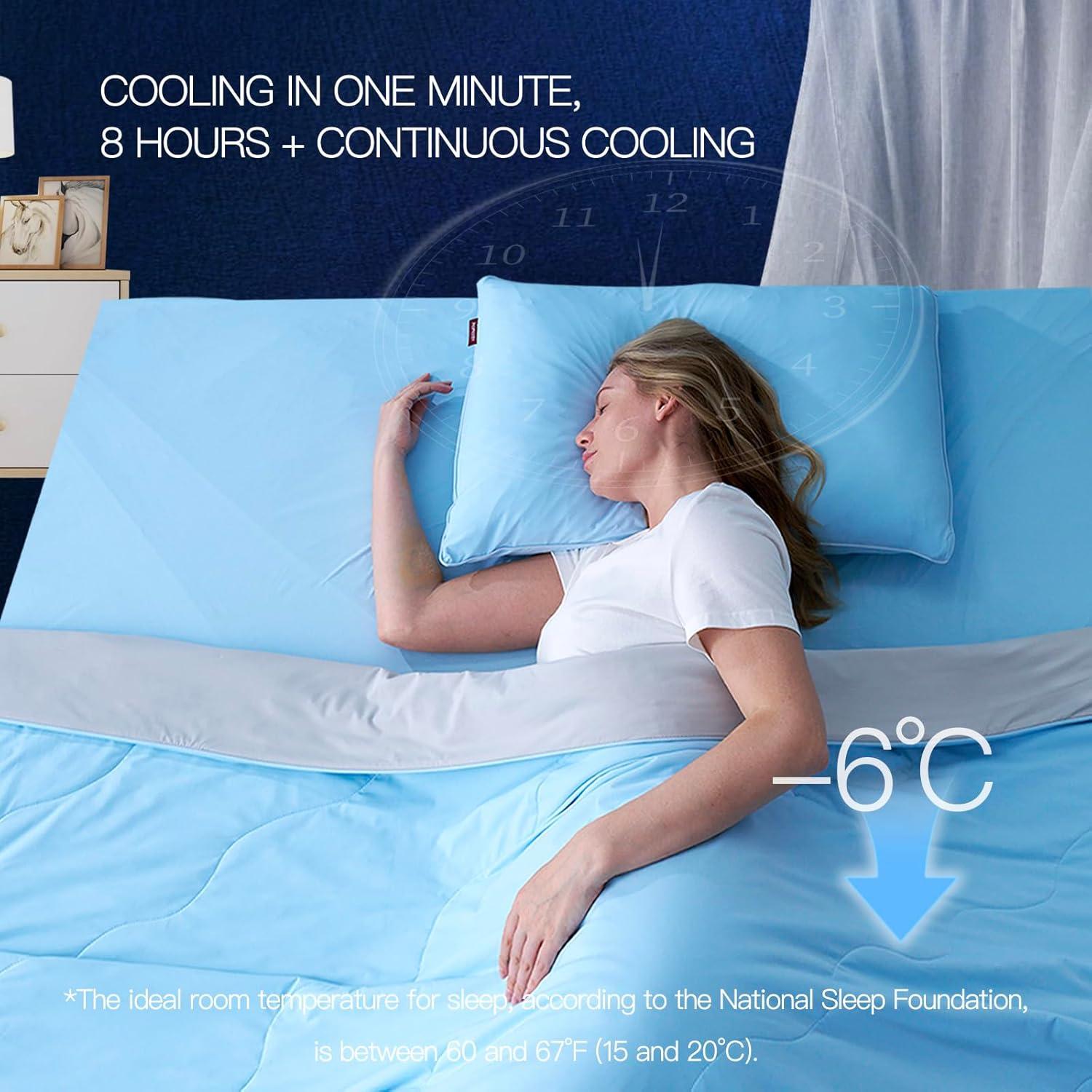 Need Spark A 3-Second Temps Drop? Refresh for 8+ Hours: ice-cool nylon yarn collides with physical mica chill particles, liken mint gel meets summer skin, melt away sticky heat on contact at once, body temp drops by 6℃ instantly. Locks in a gentle chill with AC and you won't swing between hot and cold. When one side feels less cool after hours, just turn it over using for 5+ extra hours of freshness. Flip cooling blanket once, sleep till sunrise!