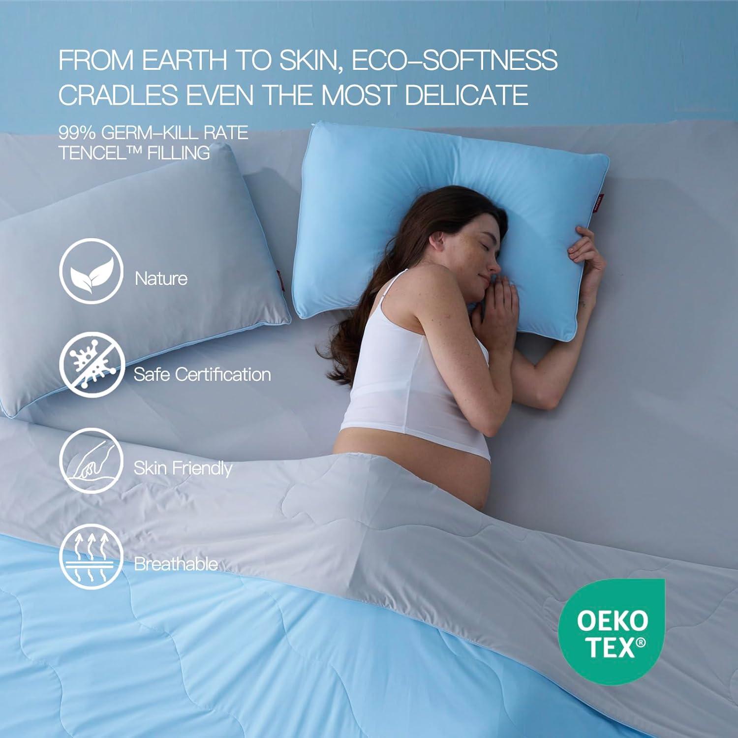 World-Renowned Recycled Fiber Filling, OEKO-TEX Certified Safe Whisper: Cooling comforter is filled with regenerated lyocell fiber, resists odors, tested for lasting freshness and 3x softer than cotton, compared to other brands' cooling additive with peculiar smell, we use physical and recyclable mica cooling particles, perfect for sensitive skin. Users praise “barely-there softness”. Tightly knit fabric envelops you for a night of serene slumber with its lightness.