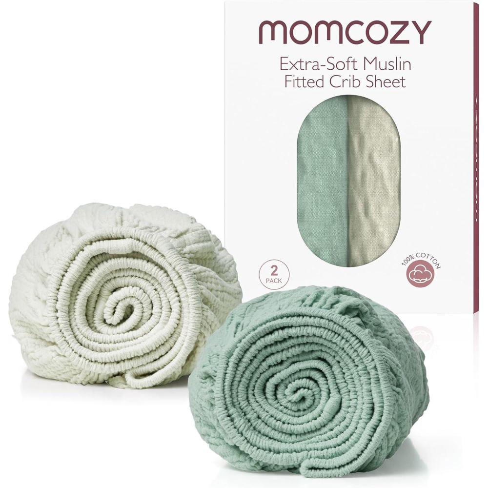 【100% Cotton, Quality and Softness All Around】Momcozy practical toddler ultra soft muslin fitted crib sheets are 100% made from quality American natural cotton, which is friendly for baby delicate skin. No weird odors or blurred designs, gentle and cushy cotton crib sheet provides a comfortable surface and a safe sleeping environment for babies helping soothe your newborn and keeping them calm when they are in sleep.