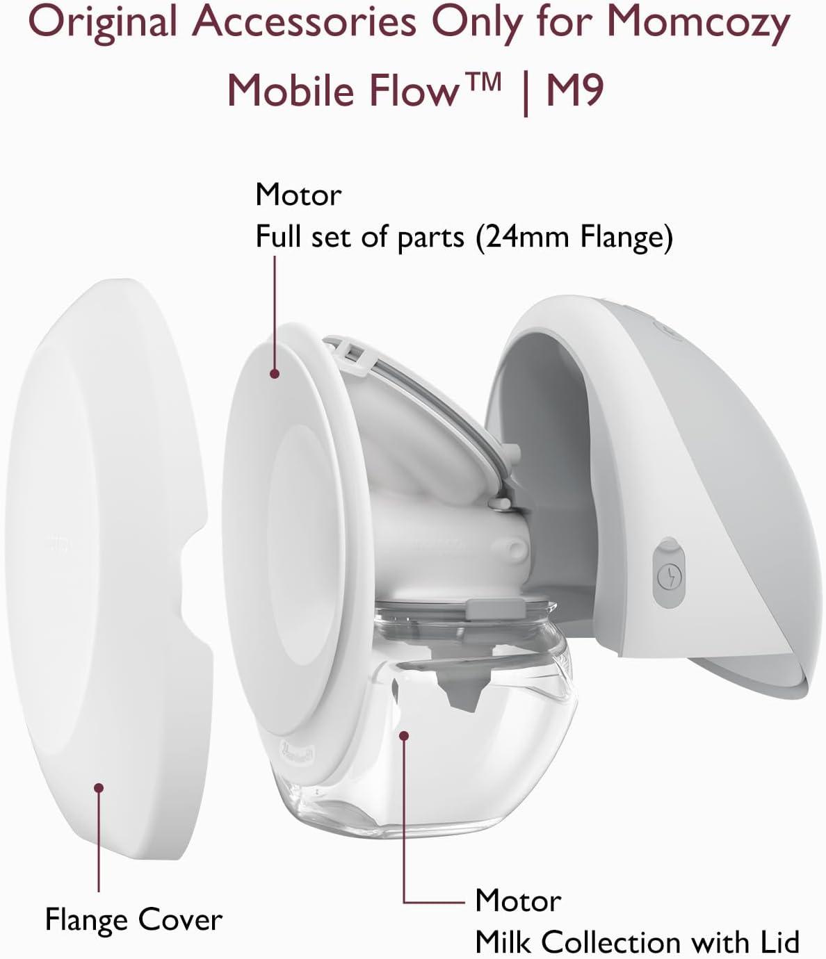 Original Parts: Works With Your Upgraded M9 Pump. The 24mm flange accessories are compatible well with your Momcozy Upgraded Mobile Flow | M9. A set is enough to meet the replacement needs of Momcozy Upgraded Mobile Flow parts. Momcozy Original Parts FSA/HSA is eligible.