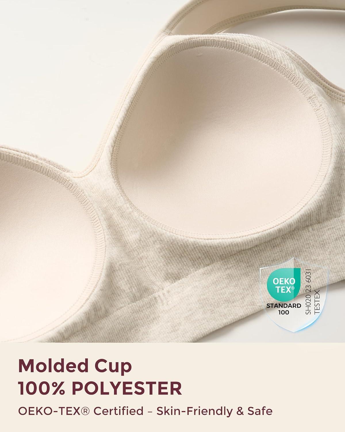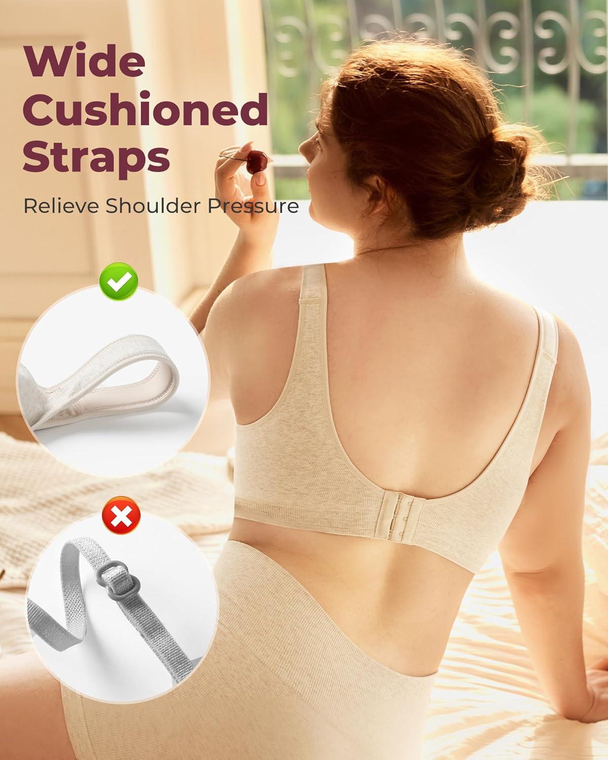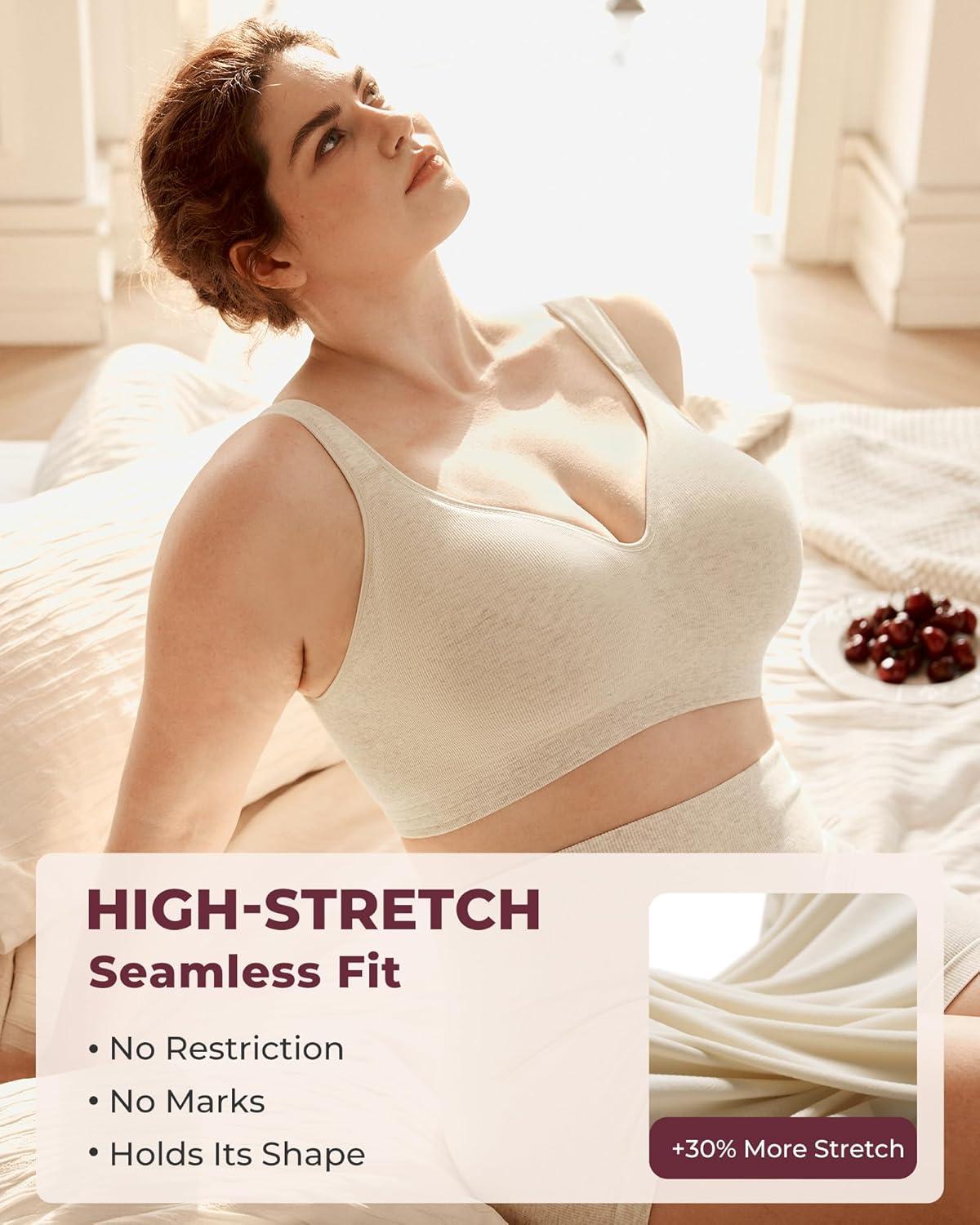 Momcozy Seamless U.S. Cotton Busty Bras for Women,Comfortable Wireless Full Coverage Bra with Molded Cups for Large Bust Oatmeal