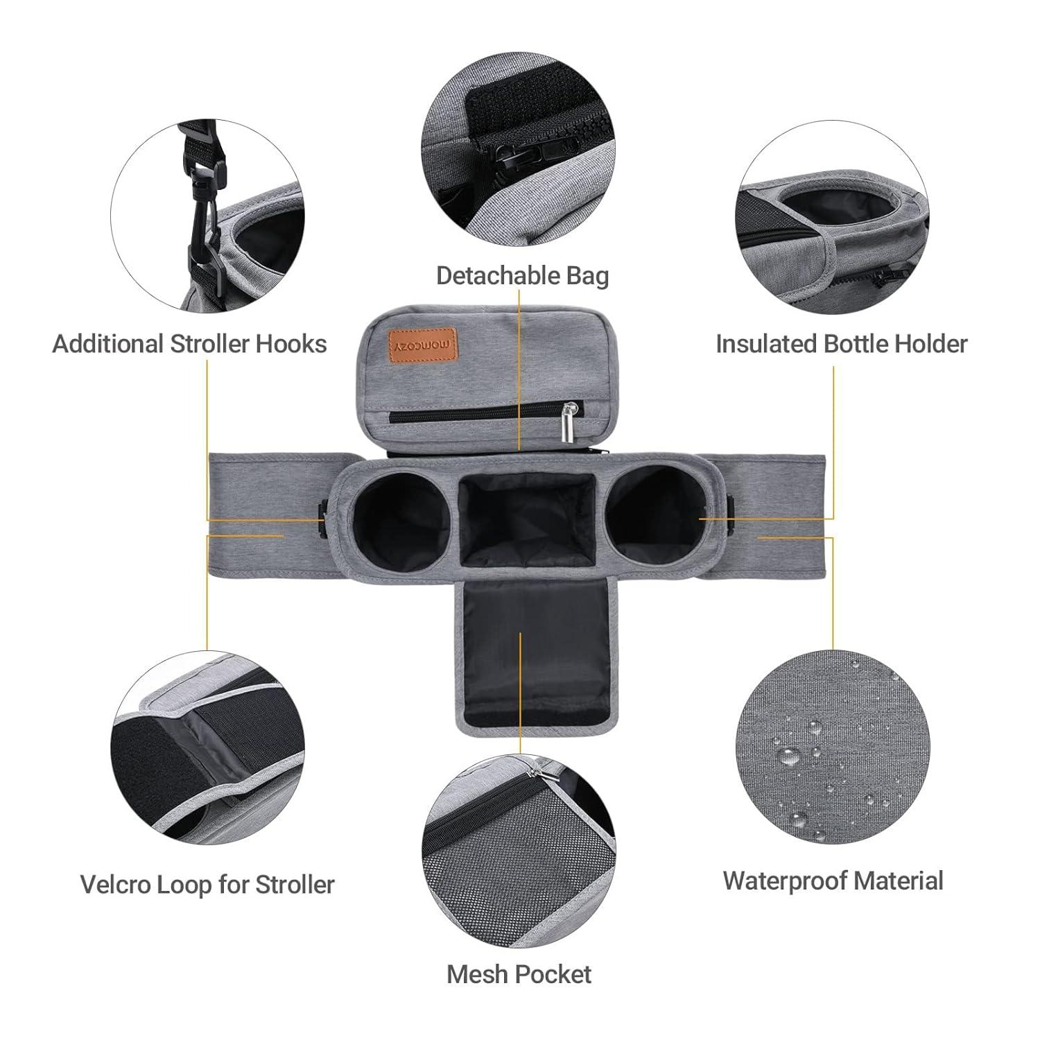 Structured Stroller Organizer: Internal multi-functional partition design, with 2 insulated cup holders, plenty of pockets, easy to organize, say goodbye to messy, placing items more hierarchical